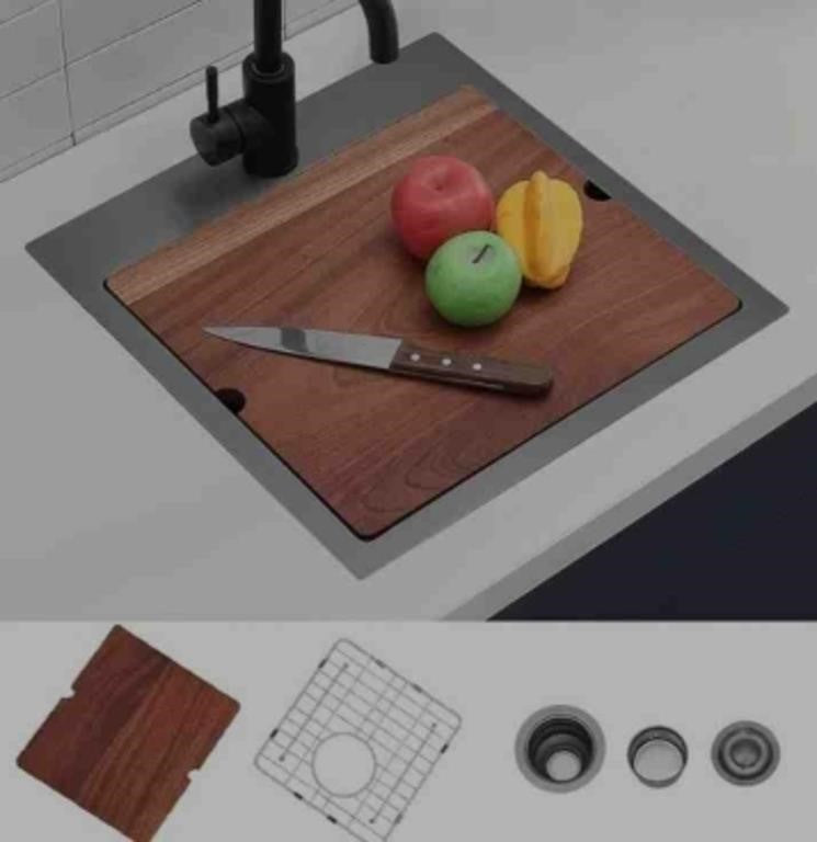 18 x 18 Inch Balck Drop in Bar Sink, 18 Inch Top Mount Stainless Steel Small Kitchen Sink, Wet Bar Prep Sink Single Bowl Workstation RV Sink with Cutting Board & Stainless Steel Grid & Strainer - Package Dimensions: 52x51x28cm