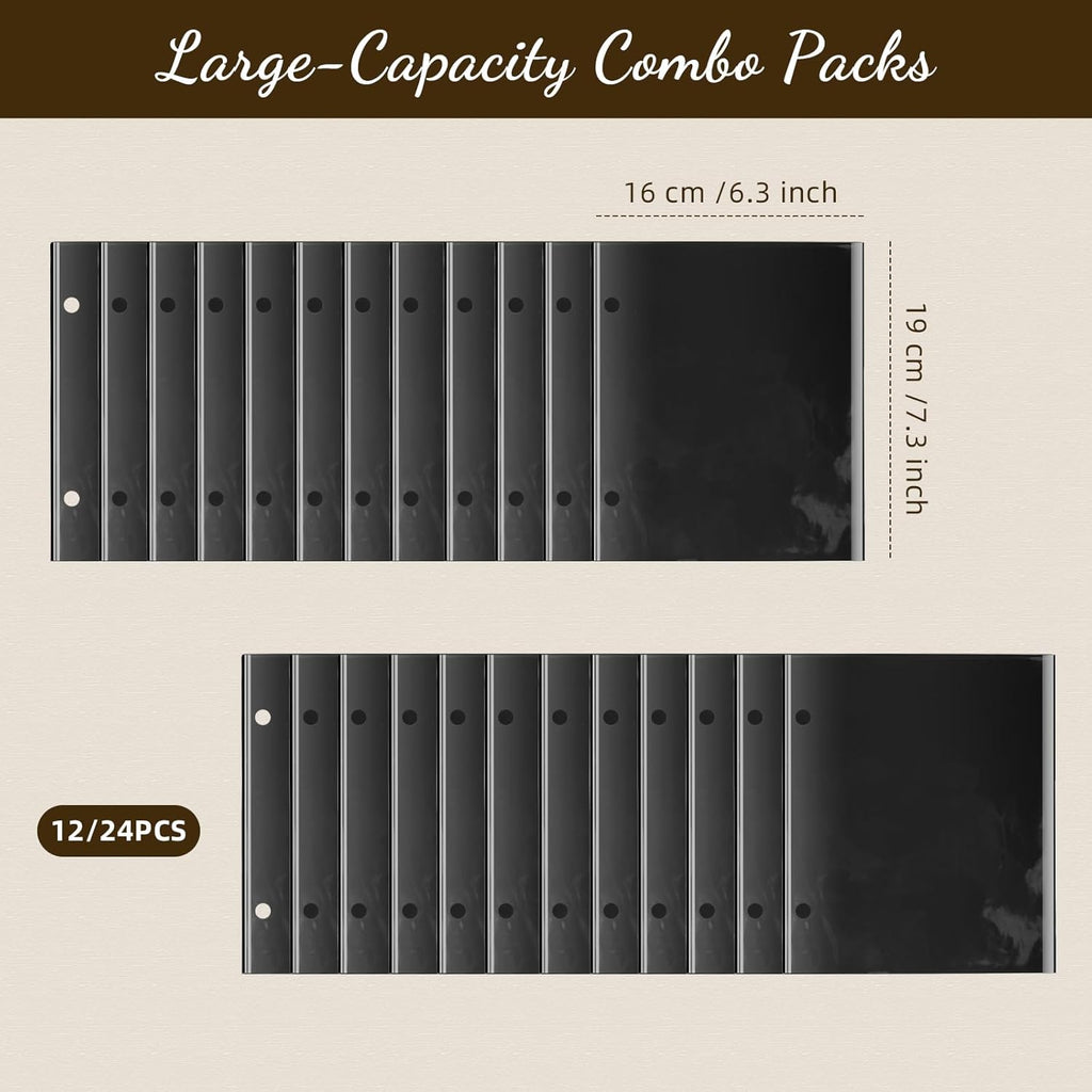 24 Pieces Black Flip Folio Marching Band Music Files Holder Flip Folder Pages Sheet 7.5 x 6.3 Inches PVC Waterproof Window Pages Musical Flip Folder with 2 Holes for Music Files