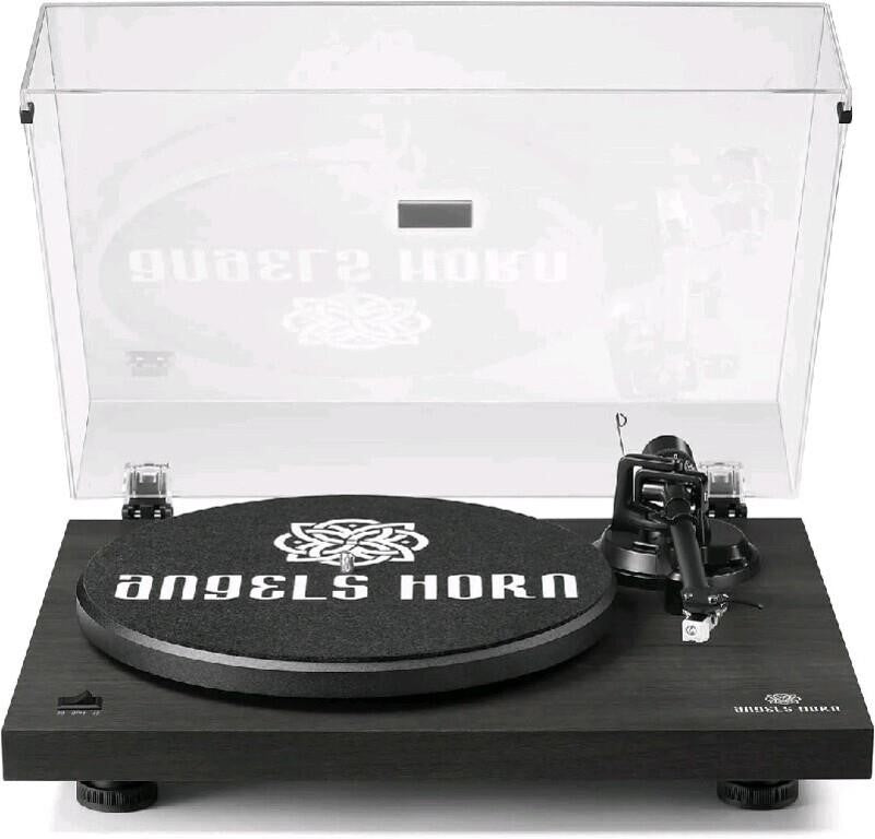 Angels Horn H002-OR-GL Vintage Wooden Bluetooth Turntable Vinyl Player black -