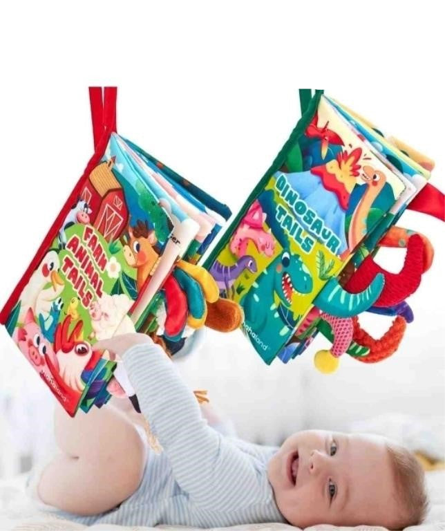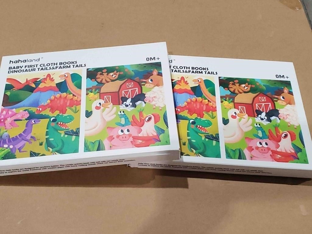 Baby First Cloth Soft Books. Dinosaur Tsils & Farm Tails, 2 Books Per Set - Package Dimensions: 23x18x5cm