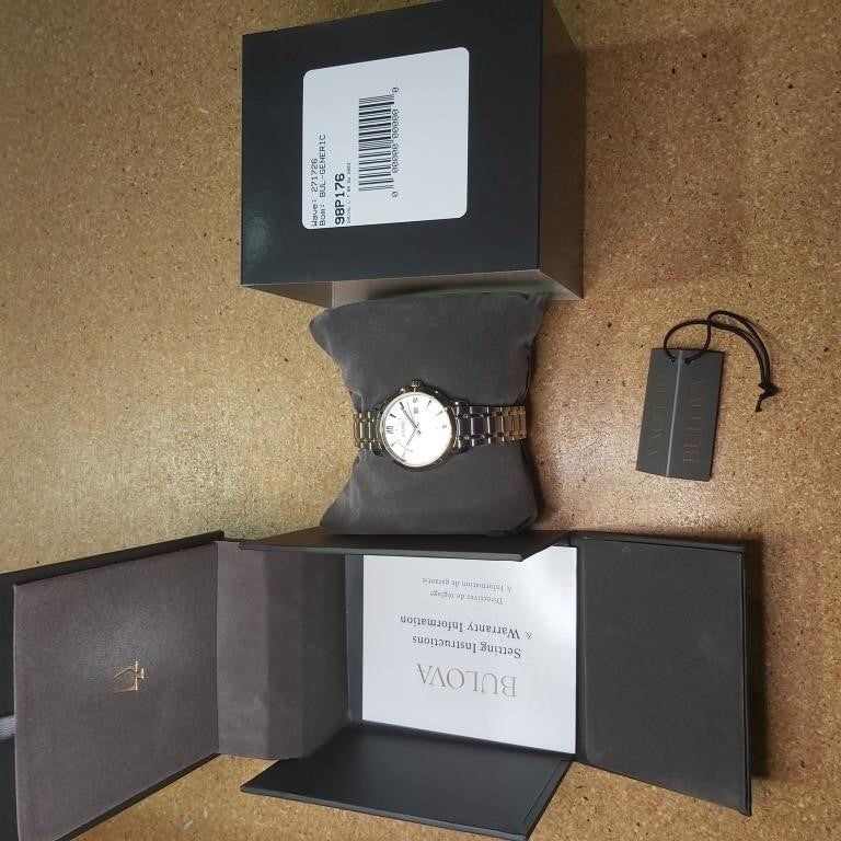 Bulova Mineral Crystal Stainless Steel Fold Over Clasp with Push Buttons Ladies