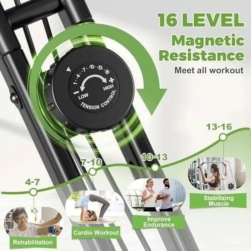 4-IN-1 Folding Exercise Bike: This bike allows you to exercise in both upright and semi reclining positions, whether you want to burn more calories or enjoy a relaxed and comfortable riding experience.