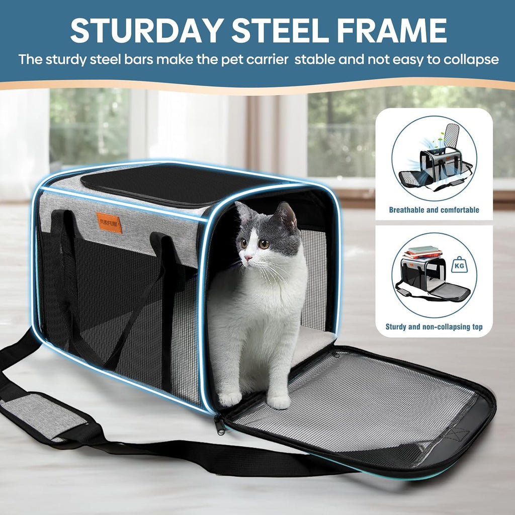 Carriers for Cats Dogs, Odorless Cat Bag with Removable Fleece Pad and Pockets for Small Medium Animals with Side Pocket (48 * 32 * 33cm)