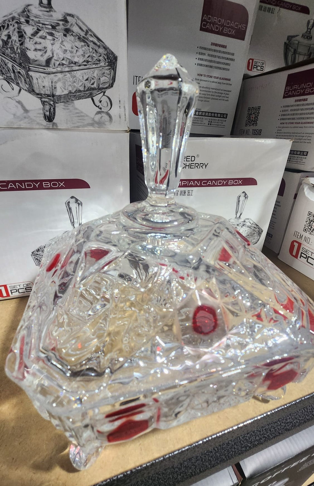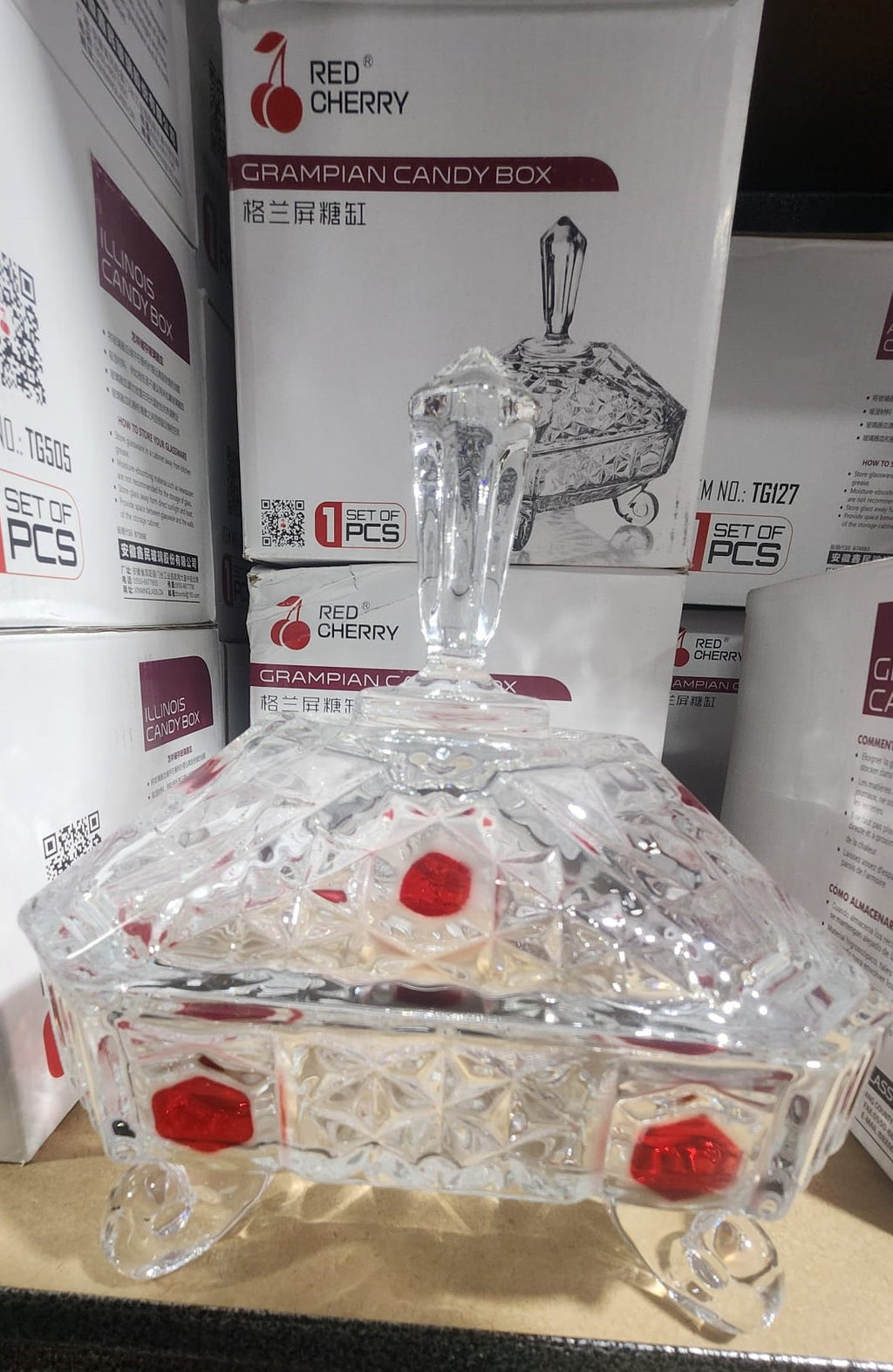 Red Cherry TG128 Candy Dish Glass Candy Bowl