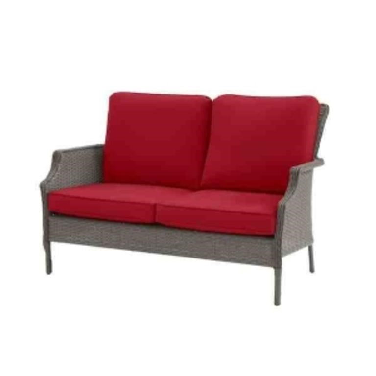 Grayson Ash Gray Wicker Outdoor Patio Loveseat with CushionGuard Chili Red Cushions Sku: 1004 493 391 - Package Dimensions: 132x88x80cm