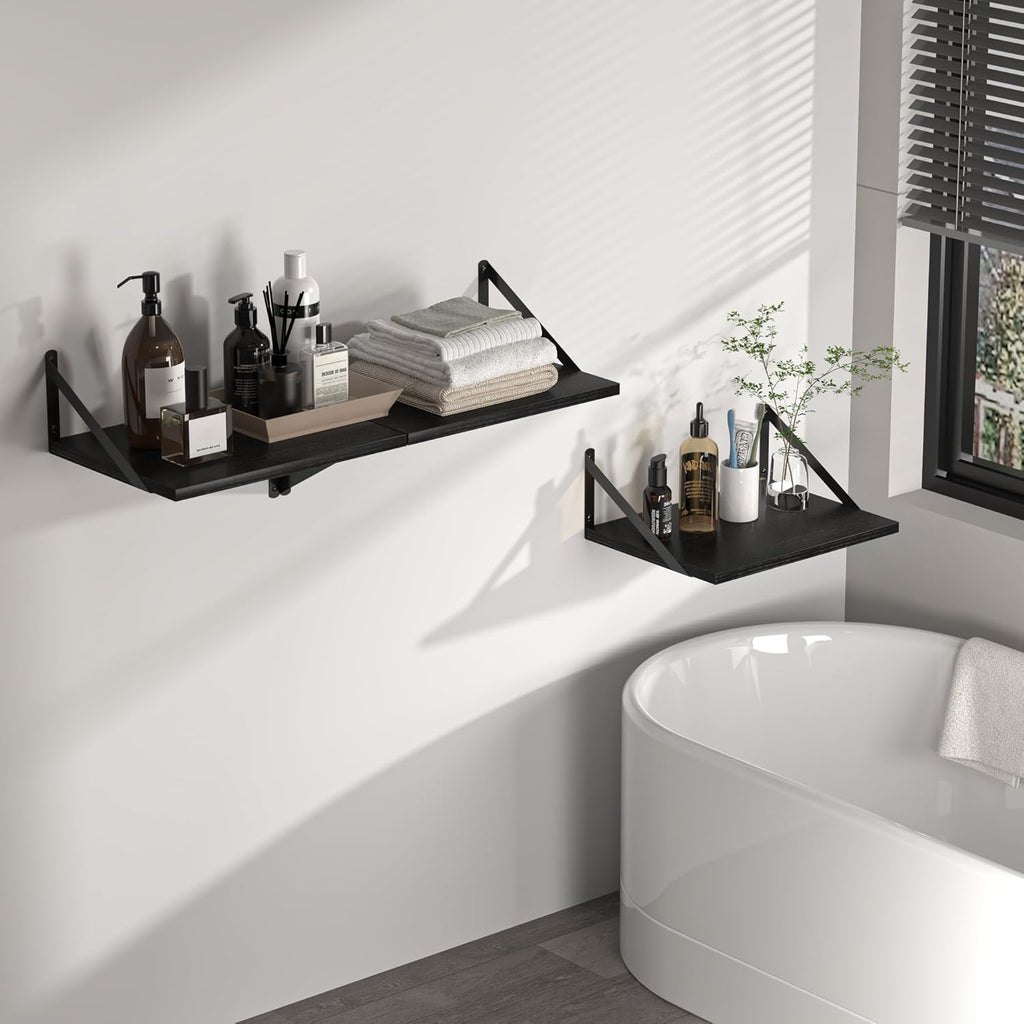 Heimlove Deep Floating Shelves, Wood Wall Shelves, Mounted Wood Shelves for Home Improvement, Set of 2, 16"Wx12" D, Black
