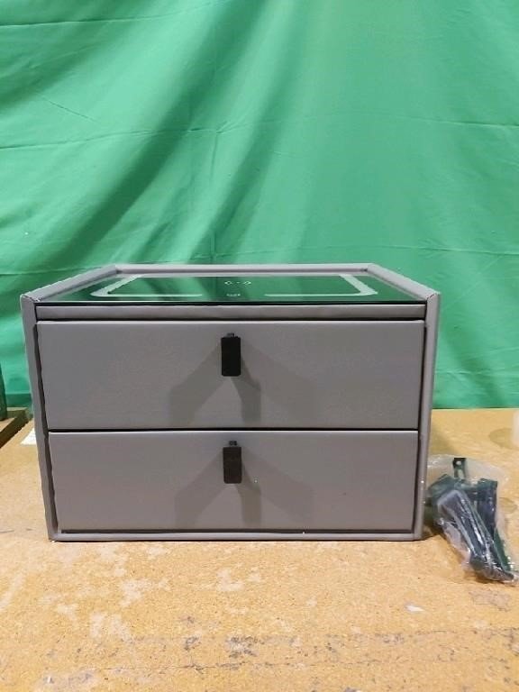 HomeBelongs Smart Nightstand with Wireless Charging Station and 3-Color LED Light Glass Top. 2 Drawer. Dark Grey. 13.5 x 13.8 x 12 Inch.
