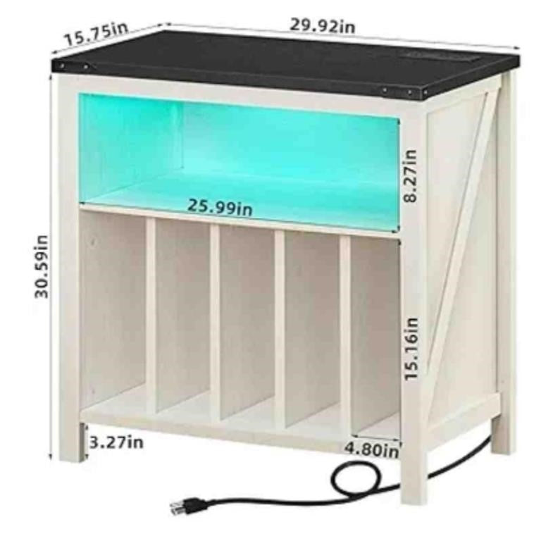 Joaxswe Large Record Player Stand with Charging Station & LED Lights, White Vinyl Record Storage Table Holds up to 230 Albums, Turntable Stand with Display Shelf, White/Black - dent/damage on edge of multiple pieces Package Dimensions: 84x45x17cm