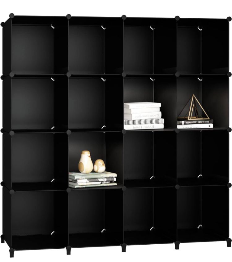 JOISCOPE Storage Cubos modulares 16 Cubos Negro Organizador portátil de plástico Estantería Estante Estante.