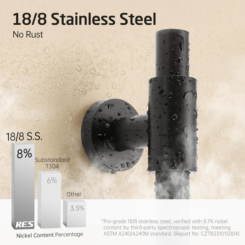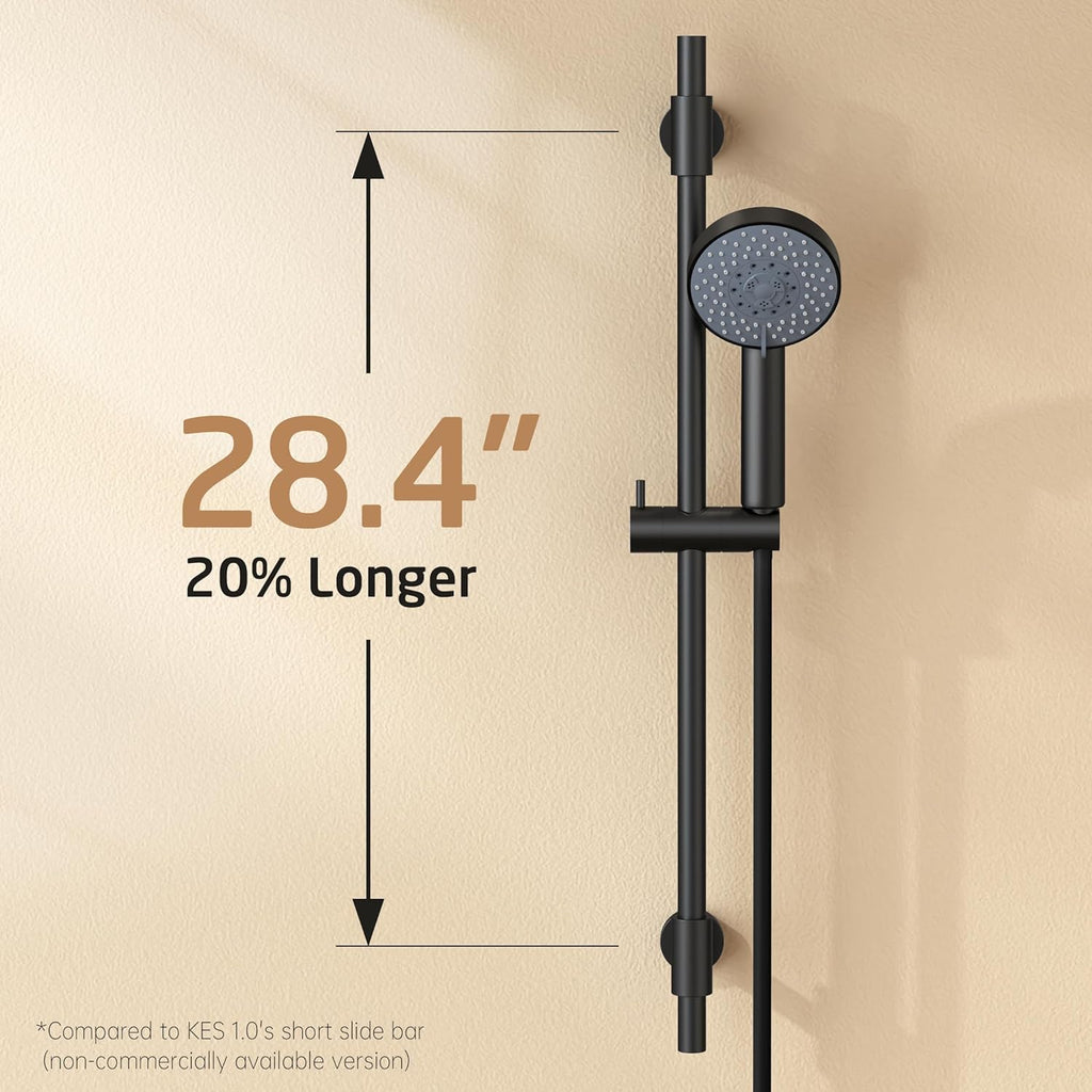 KES Matte Black 30-Inch Shower Slide Bar with Adjustable Handheld Shower Head and 59-Inch Hose, 5-Function Hand Shower with Wall Mount Shower Slide Bar Set 18/8 Stainless Steel, F209S78-BK+P501B-BK