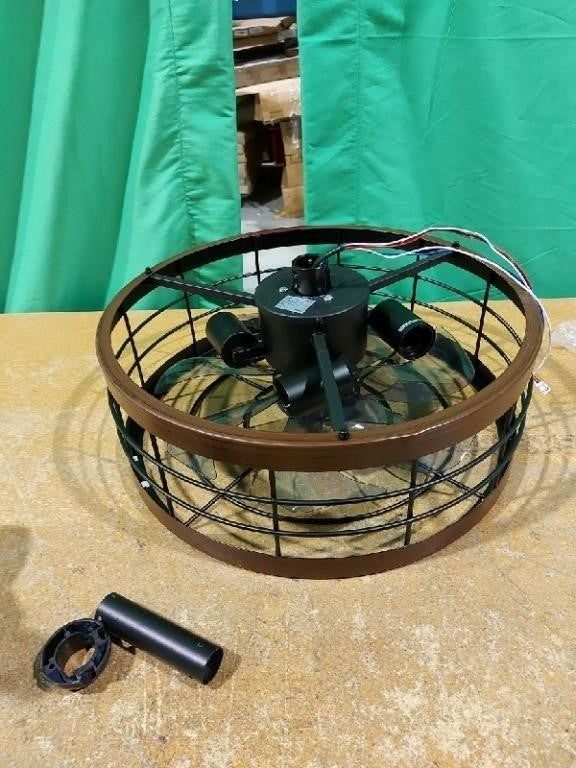 LEDIARY semi flush 16in Caged Ceiling Fan with 4 Light, with Remote(6 Speed,1/2/4/8h Timing)light bulb not included-Walnut -
