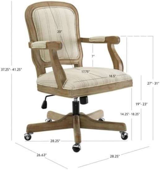 CHAIR Linon Maybell Wood Upholstered Office in Beige Stripe