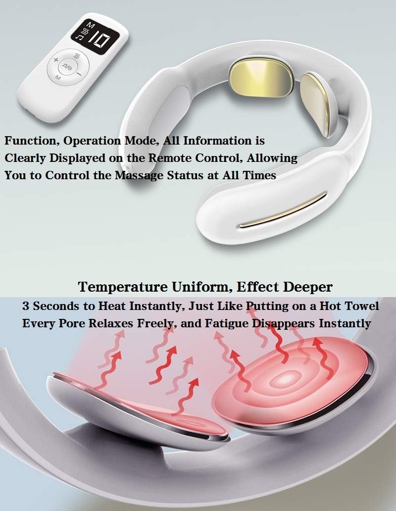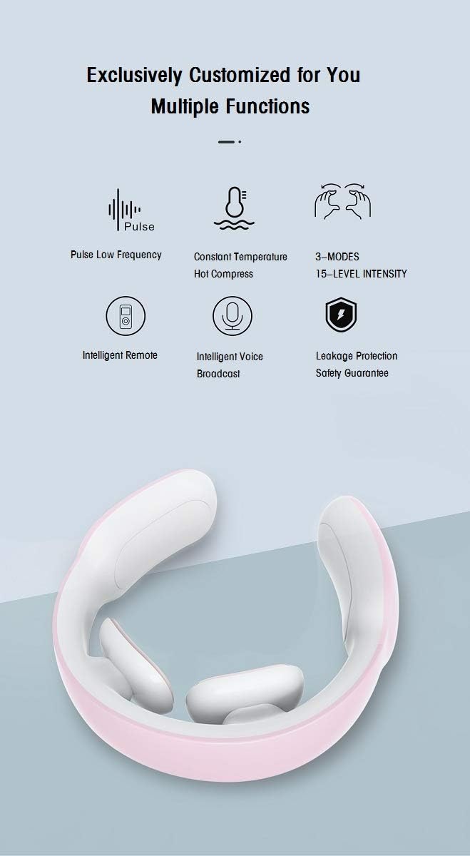 M10 Intelligent Electric Pulse Neck Massager with Heat Portable Massage Equipment with Voice Broadcast Cordless (White)
