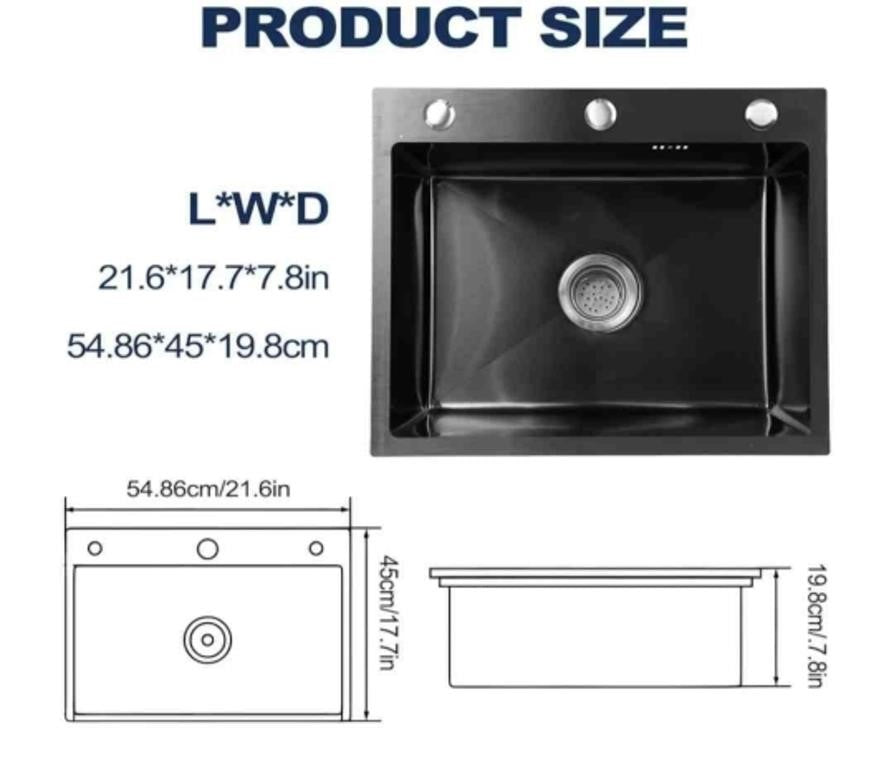 Noliven 22x18 Inch Black Drop in Kitchen Sink, 18-Gauge Stainless Steel Bar Sink with Strainer Basket