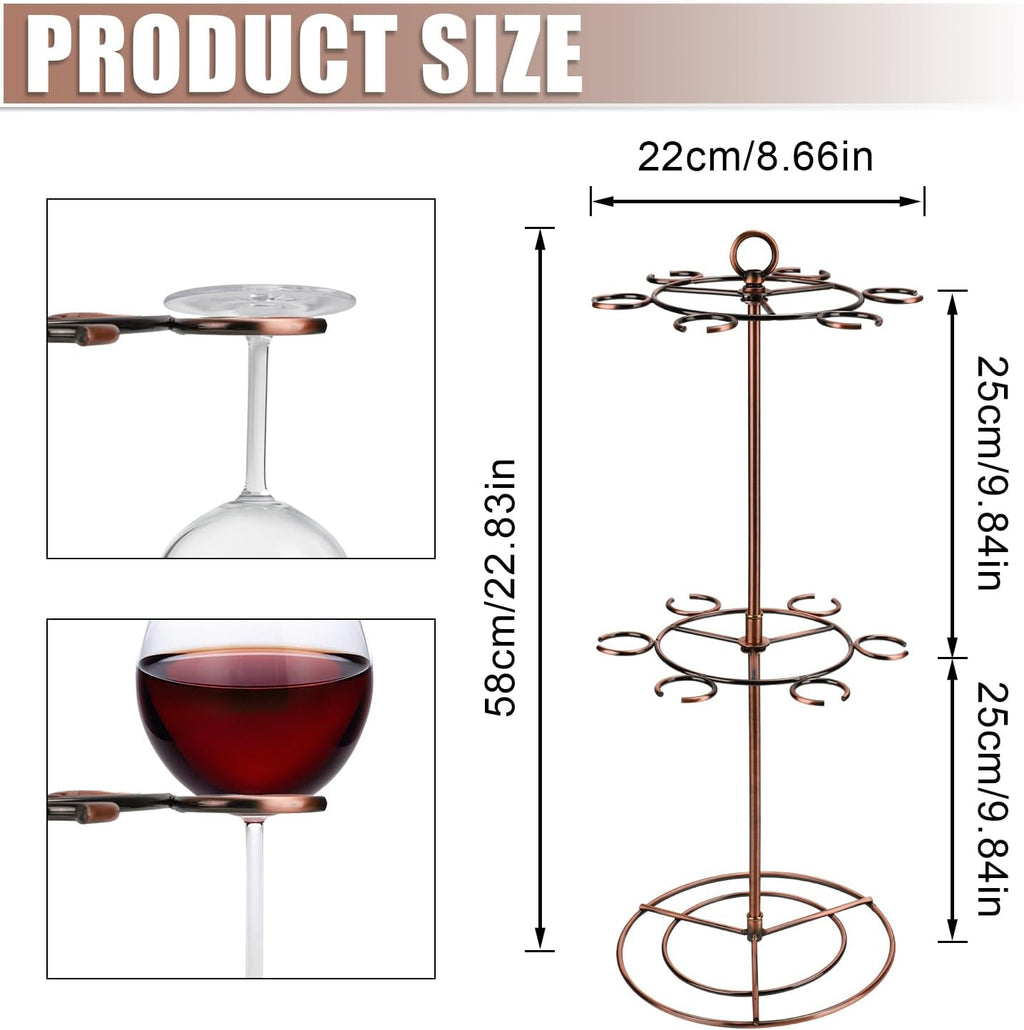 NQEUEPN Champagne Tower, 2 Tiers 12 Holders Champagne Tower Stand Metal Cocktail Tree Stand Wine Glass Drink Cup Shelves Rack, 22.83x8.66x8.66 inch, Bronze