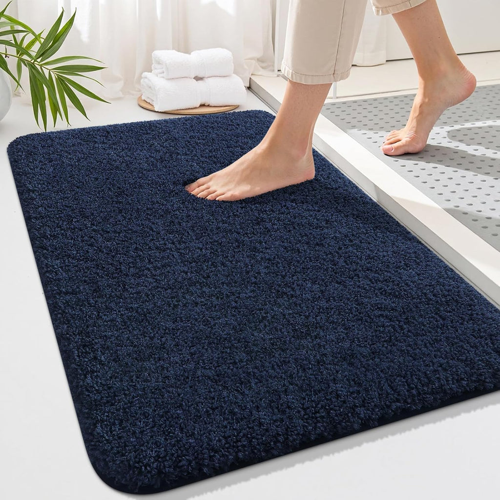 OLANLY Soft Microfiber Bath Mat, Super Absorbent Plush Shaggy Bathroom Mat, Machine Washable Dry Bathroom Rug, Non-Slip Bath Mats for Bathroom Floor, Tub and Shower, 24x36, Navy