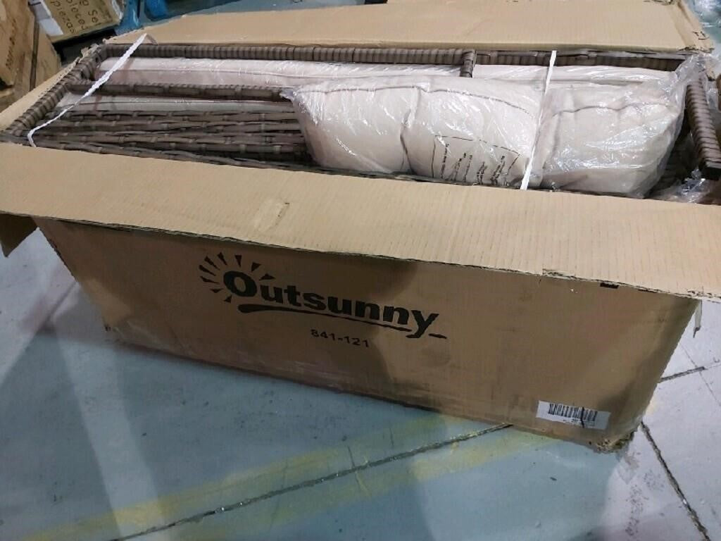 Outsunny 3 Piece Patio Furniture Set, Rattan Outdoor Sofa Set with Chaise Lounge & Loveseat, Soft Cushions, Tempered Glass Table, Beige/BrownDistressed Package Dimensions: 130x69x37cm