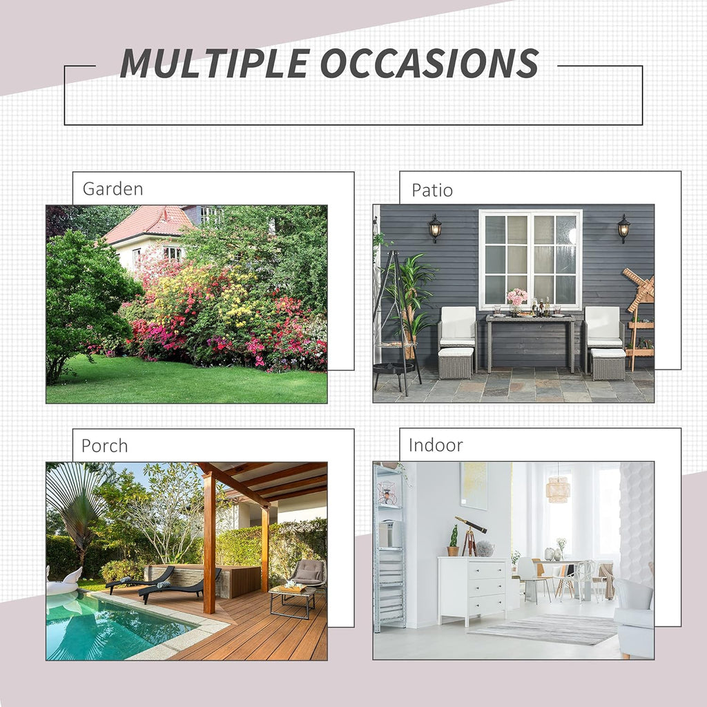 - Wicker and UV-resistant seat cushions designed to resist unfavorable weather conditions