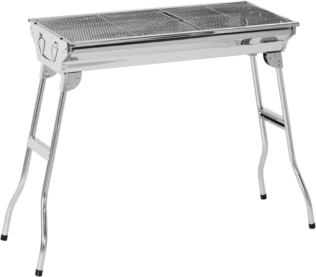 Outsunny Stainless Steel Portable Charcoal Grill, Folding Barbecue Grill with Handles for Outdoor, Cooking, Camping, Picnic