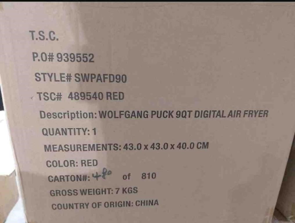 Wolfgang Puck 9-Quart Digital Air Fryer Red - Package Dimensions: 42x40x39cm