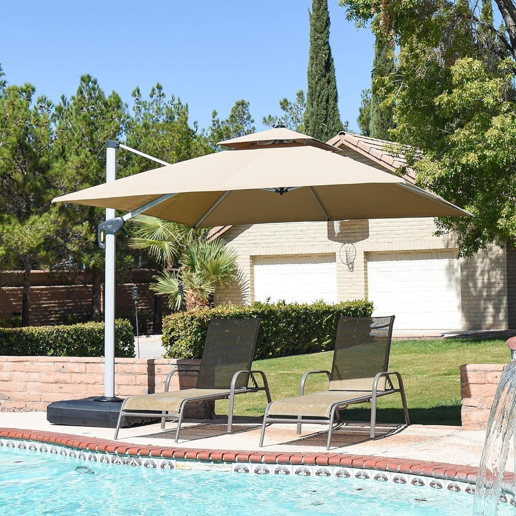 Our outdoor umbrella bones and heavy-duty ribs are made of robust aluminium for maximum stability and wind resistance. Uncompromising Safety and Durability - Our garden umbrellas are designed to be both sturdy and durable, able to withstand even the toughest weather conditions. Unlike flimsy beach umbrellas, our cantilever umbrellas offer peace of mind and uncompromising safety.
