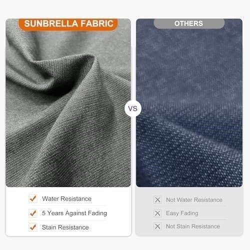 Sunbrella Fabric - Made of 100% solution-dyed acrylic, 270-gram breathable outdoor fabric, 5 years fade-resistance, it is also mildew, stain, and water resistant, Block over 98% of ultraviolet rays Sturdy and Stable - All aluminum umbrella pole and 8 thickened ribs, coated with anti-oxidation paint improves strength and durability 360 Rotation -