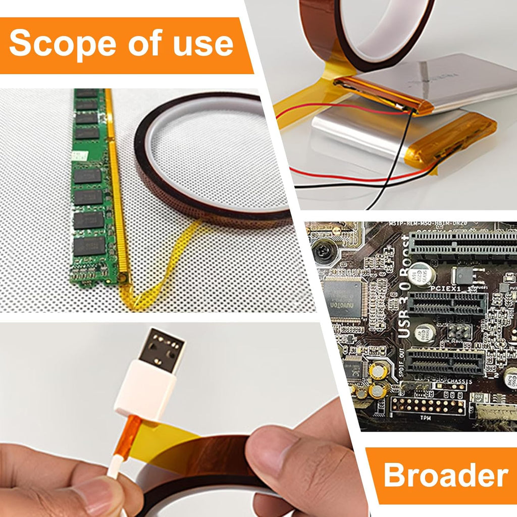 QILIMA Polyimide Tape, High-Temperature Resistant Tape, Kapton Tape, No Residue Heat-Resistant Tape for Electric Task, 3D Printing, Soldering, Sublimation, Masking, 5 Pack 1inch x 33m(108ft)