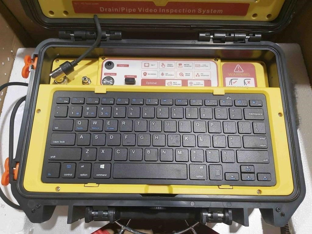 Sanyipace Sewer Camera – 7mm Stiff Cable Self-Leveling Drain Camera with 512Hz Transmitter, 10-inch Touch Screen, Wireless Keyboard, 1080P HD Inspection Camera for Plumbing, Ducts, Pipes (165FT/50M)