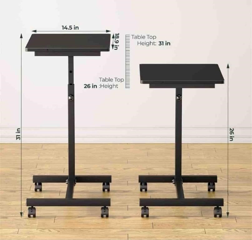SOROGRA Overbed Table with Lockable Wheels, Height Adjustable Rolling Desk for Bed and Couch, Black - Package Dimensions: 51x43x12cm