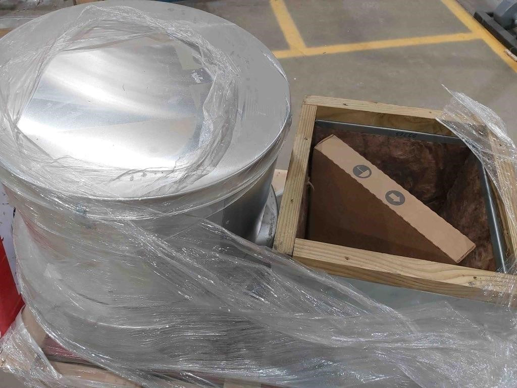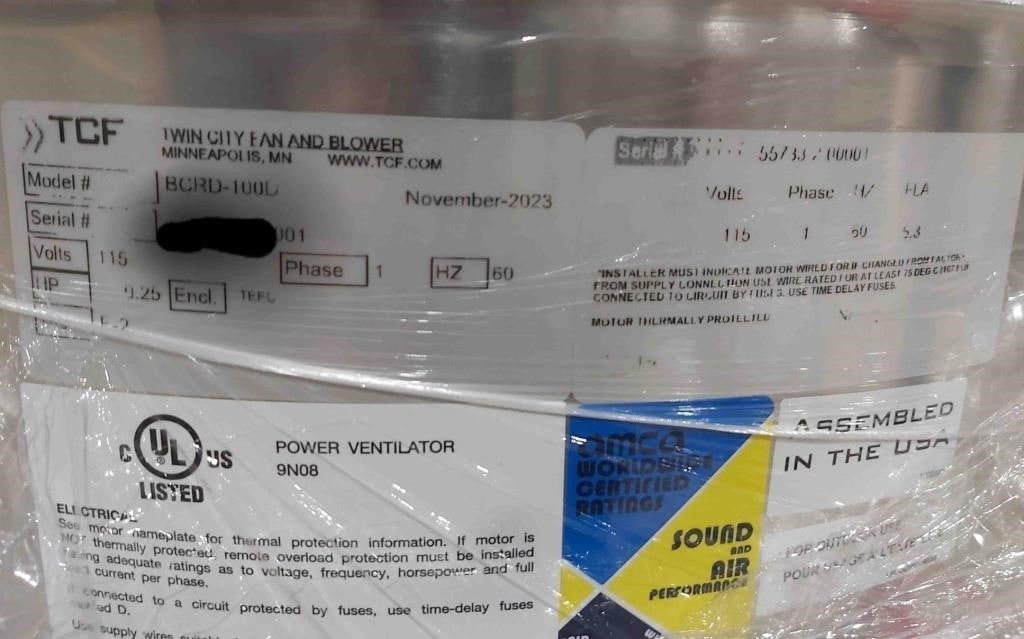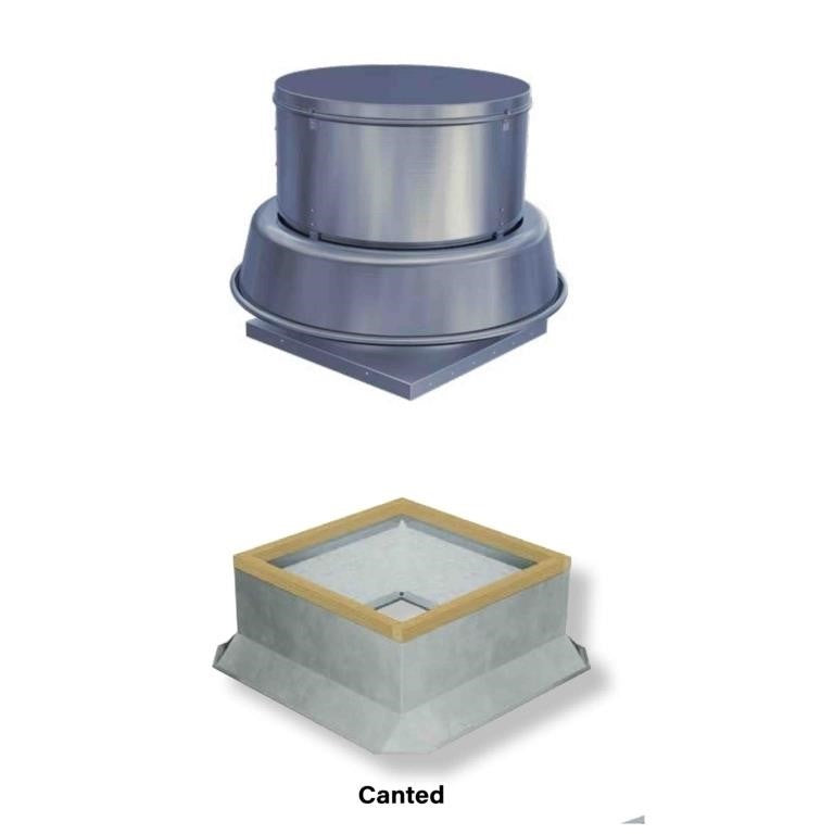 TCF Twin City Fan And Blower BCRD-100D Belt Driven Power Ventilator 115V Single Phase 60Hz, 5.3 FLA And Galvanized Insulated Canted Roof Curb 18.5" X 18.5" X 18" High With Dampshelf