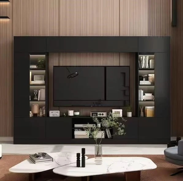 4-piece unit consists two piers (1-left , 1-right), a 66.6 in. console and a bridge; the total wall Length using the 4-pieces is approximately 114.2 in.. The luxurious and fashionable appearance, coupled with practical and reliable storage functions, makes our entertainment center suitable for use in various scenarios such as bedrooms and living rooms.