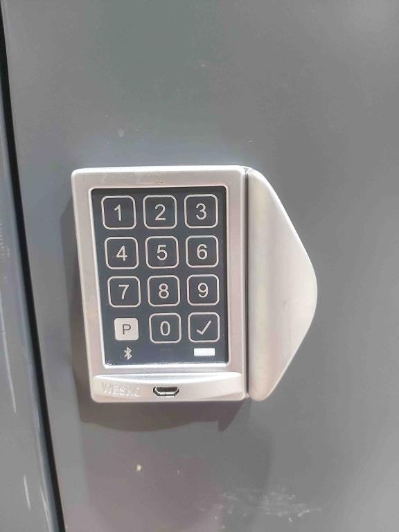 Two-layered Metal Storage Locker, Double Door With Wesko Bluetooth Locks And Pin Code Entry, 182x45x45cm - Grey - Minor scratches & dents Package Dimensions: 185x45x45cm