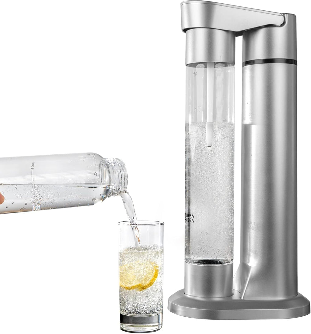 Ultima Cosa Soda Maker with CO2 Cylinder - Home Fizzy Drink Bubbly Water Machine 1LBPA-free Reusable Bottle - Make Homemade Sparkle Water, Juice, Coffee, with Fruit (Silver)