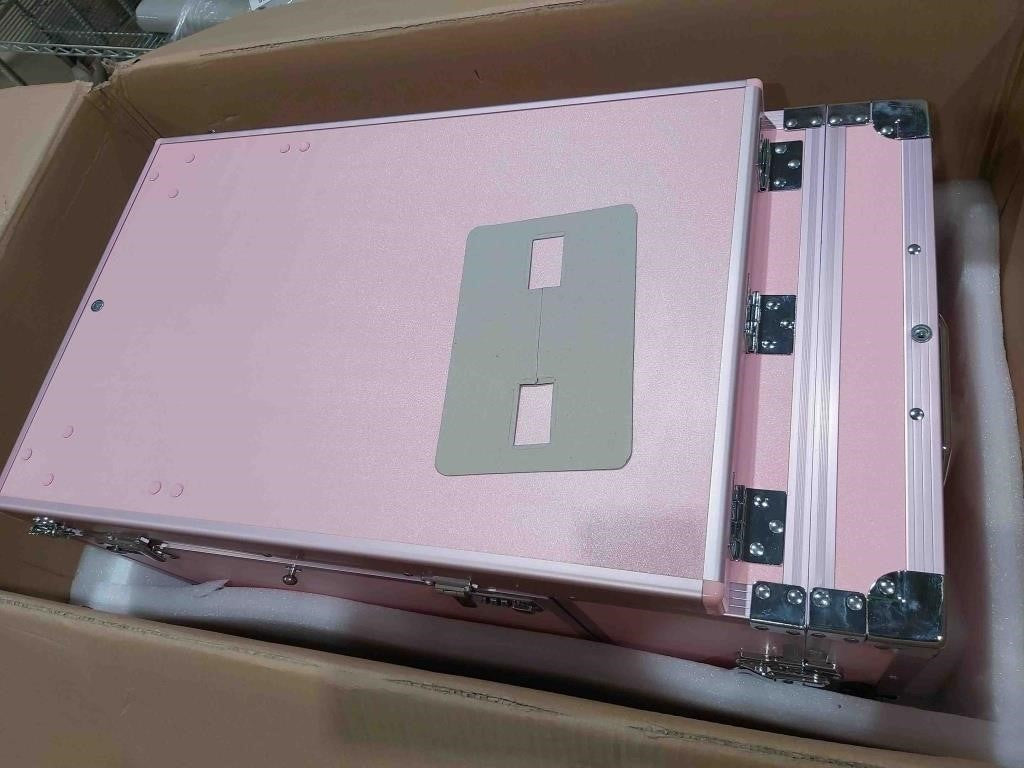 Umisu Rolling Manicure Table with Mirror & 4 Drawers, Makeup Train Case with Desk, Foldable Nail Desk Cosmetology Case with 360° Swivel Wheels, Pink -