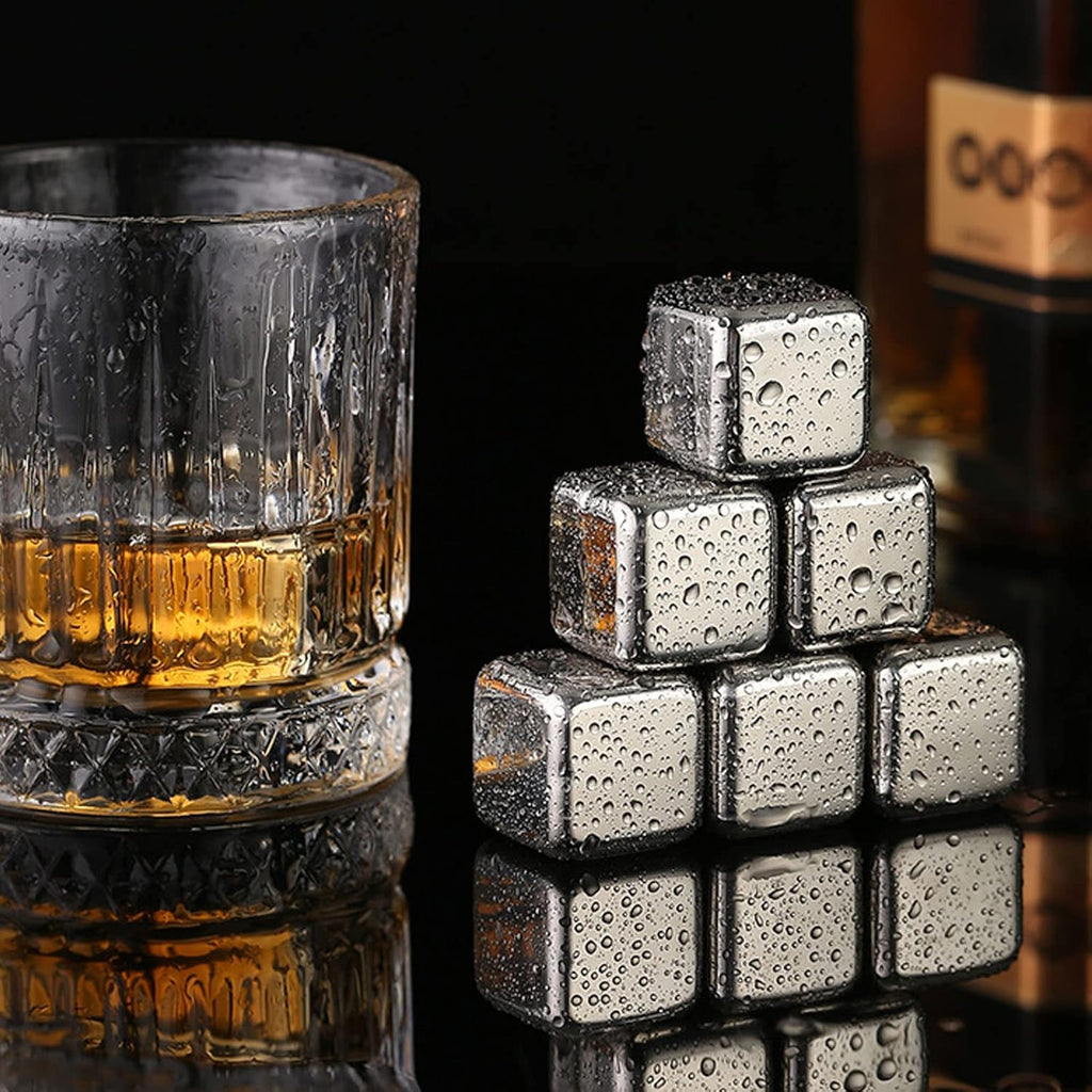 Whiskey Stones 4 Pack,Reusable Ice Cubes, High Cooling Technology,Stainless Steel Ice Cubes, for Whiskey, Vodka, Liqueurs, Wine,Beverage Juice or Soda(Pack of 4)
