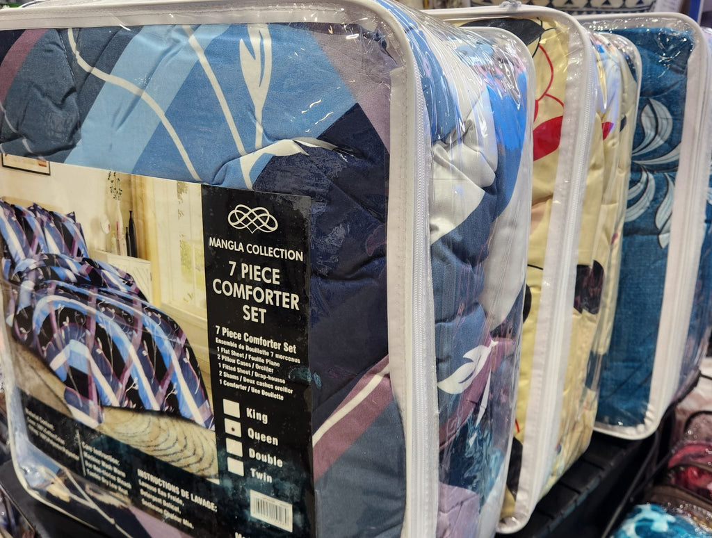 7 Piece Luxury Comforter Set For Bed 1 Comforter, 2 Shams, 3 Decor Pillows, 1 Fitted Sheet. Blue,white,Grey - Package Dimensions: 56x48x21cm