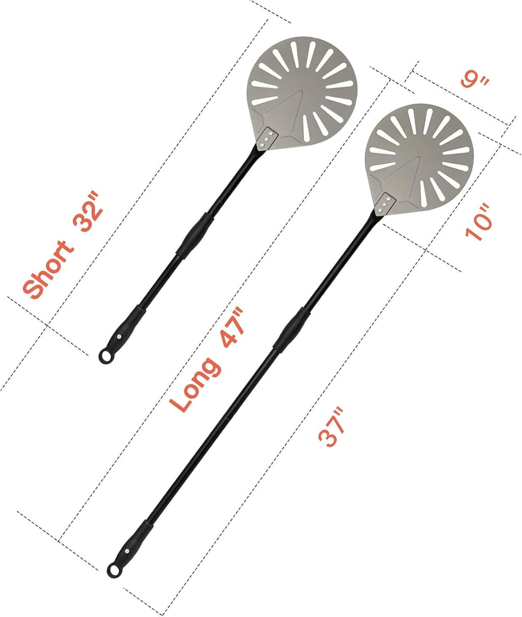 9" Perforated Turning Pizza Peel, G.a HOMEFAVOR Round Professional Aluminum Turning Pizza Paddle for Baking Pizza with Detachable Handle 32 or 47 inch