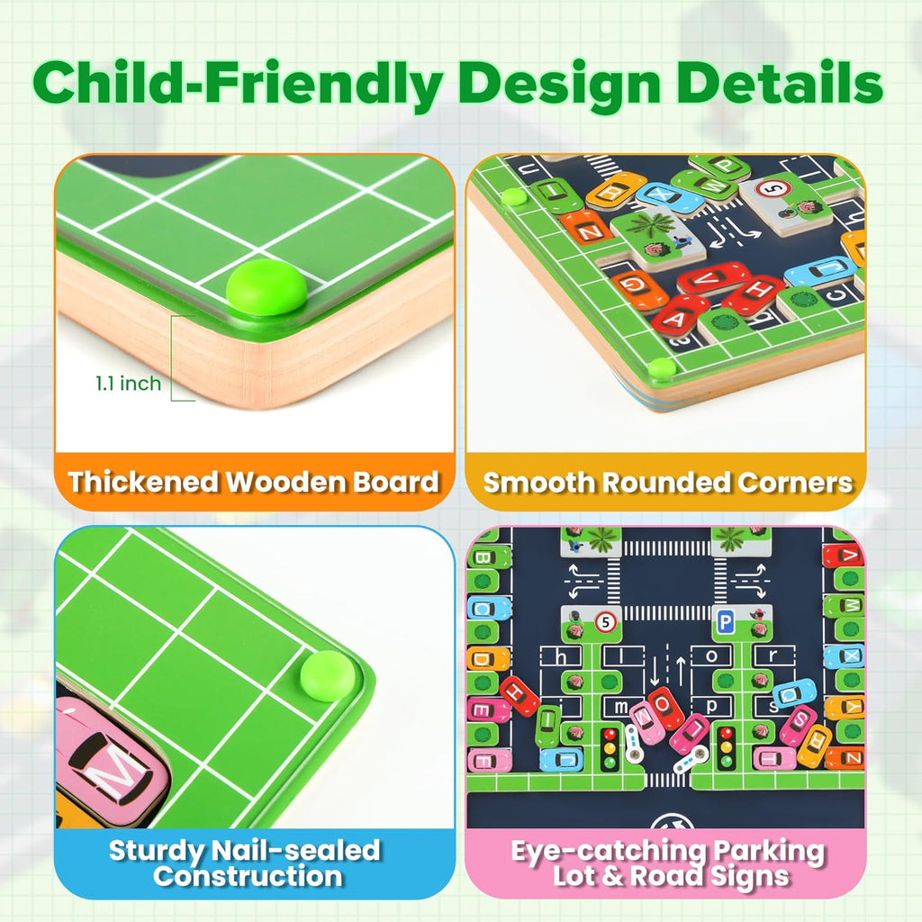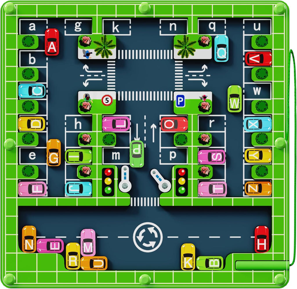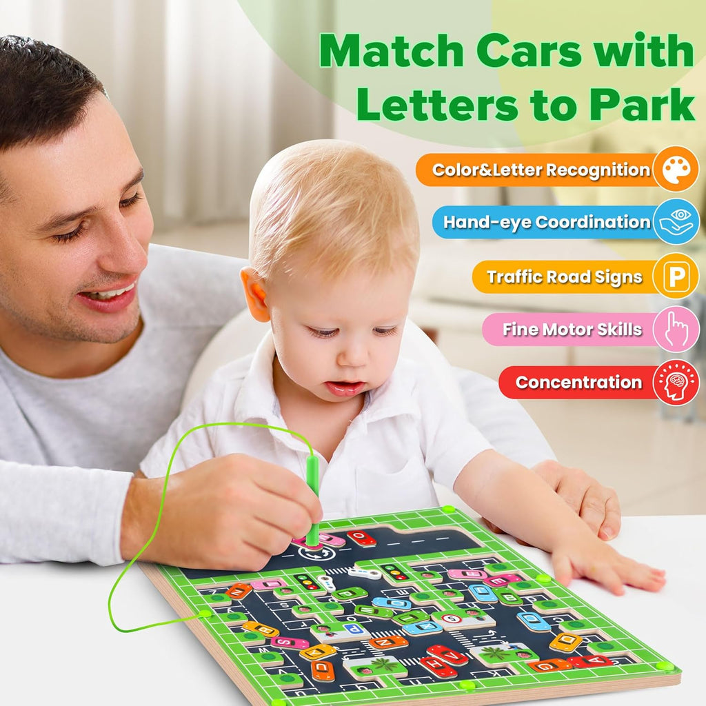 Magnetic Alphabet Maze - Montessori Toys for 3 4 5 Year Old, Wooden Magnet Letter Parking Maze Board Puzzle STEM Preschool Learning Activities Toys Gifts for Kids Boys Girls Toddlers
