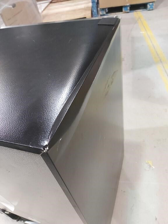 Hisense 24-inch W 54-Bottle Wine Fridge - Stainless Steel, Model # HWS54029SS - dents around unit, missing 1 shelf, 1 railing broken, powers on